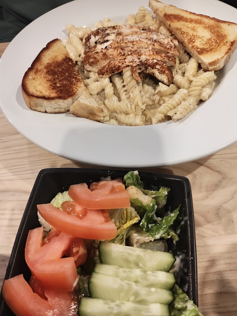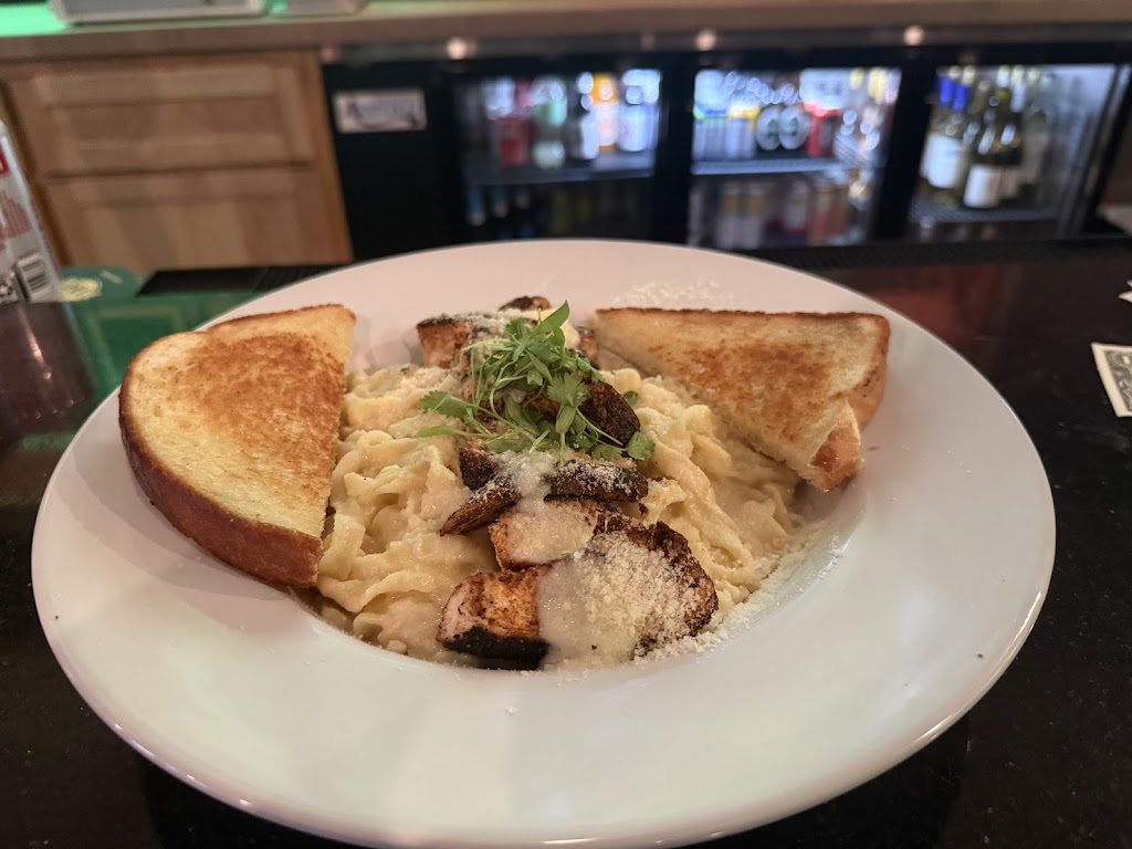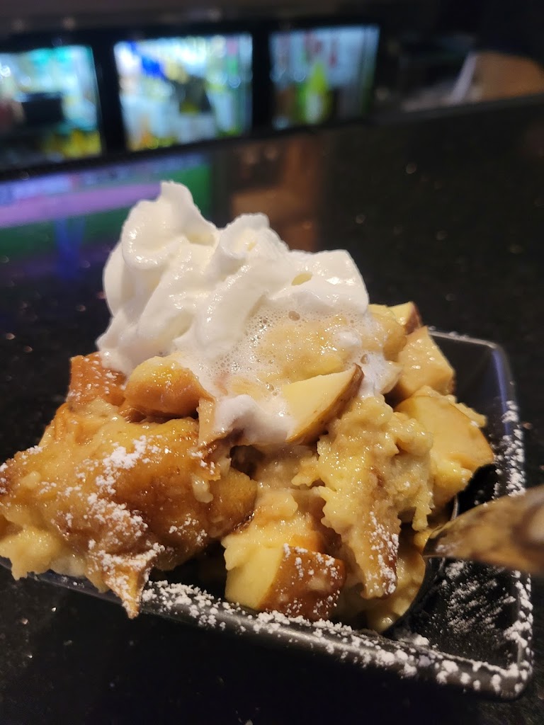 Had the chicken alfredo flatbread, whiskey old fashioned sweet and bread pudding it was delicious. Thank you!