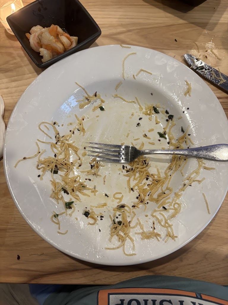 We had the hummus and tuna tartar and both were delicious. For our entrees, we all had the angel-hair pasta with scallops and shrimp and it was amazing.