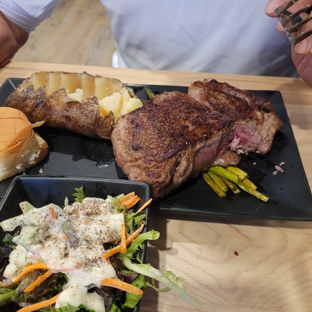 A very upscale vibe with down to earth pricing. My beef eating husband could not finish his ribeye this evening. Grand portions.