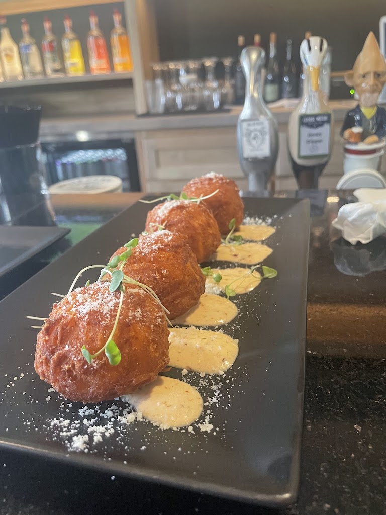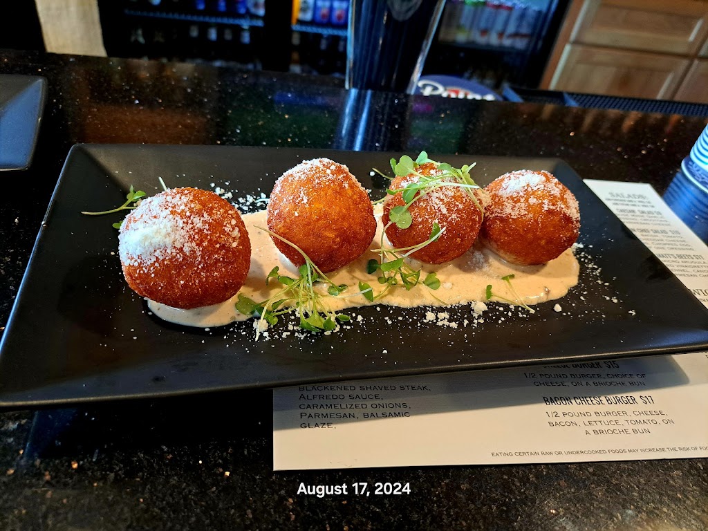 What a delicious meal with cheese curd balls. Above great in flavor and presentation. We will be back again