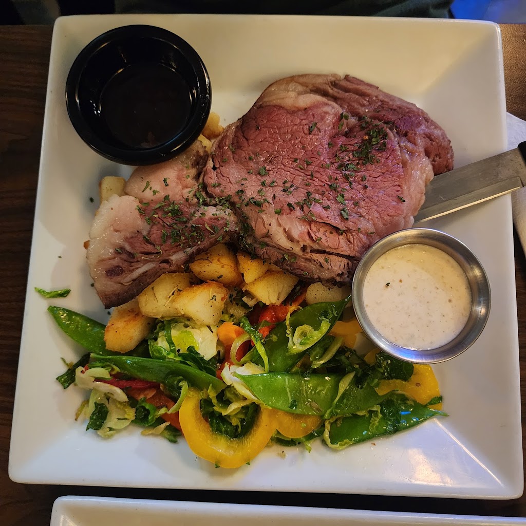The prime rib was good except for the Chinese 5 spice in the sautéed mushrooms and onions. Chinese 5 spice does not make a great steak seasoning.