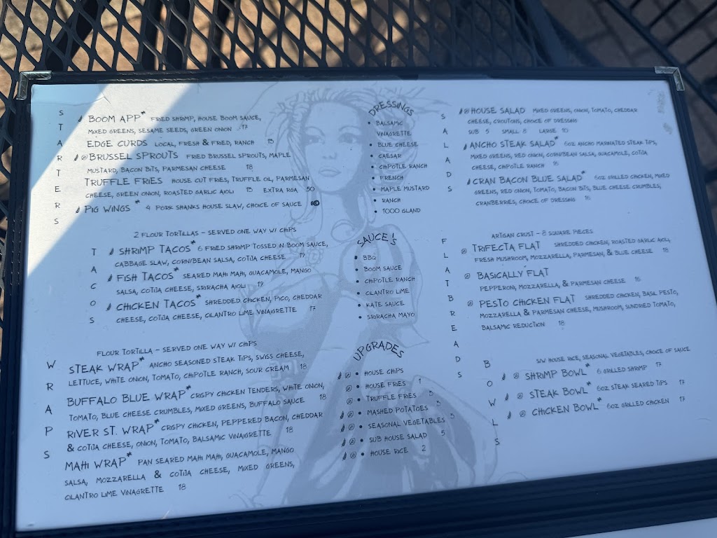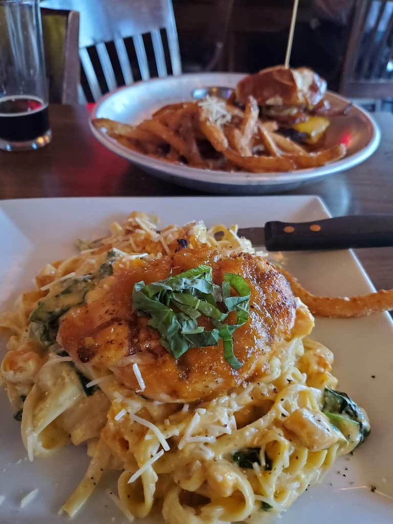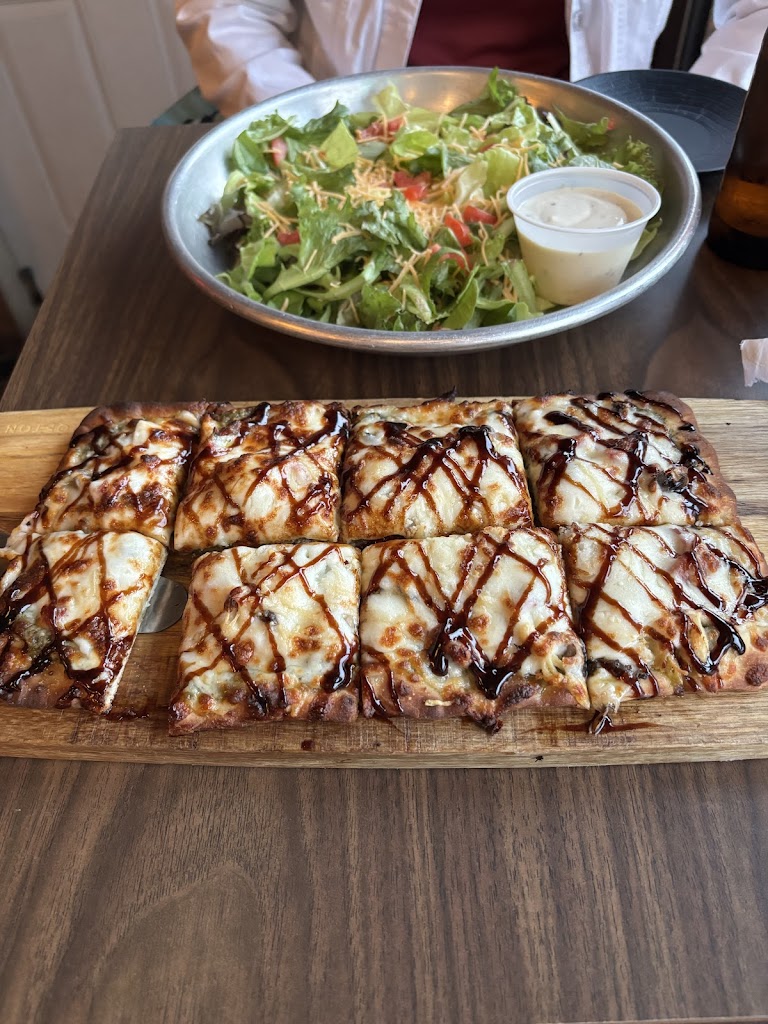 I got house salad with blue cheese dressing, chicken pesto flatbread, tiramisu, water, & sprite. All were tasty. I watched the Lions vs Chargers football game on T.V. Staff is friendly & very helpful. Street parking. I will come back next time I visit Chippewa Falls, WI.