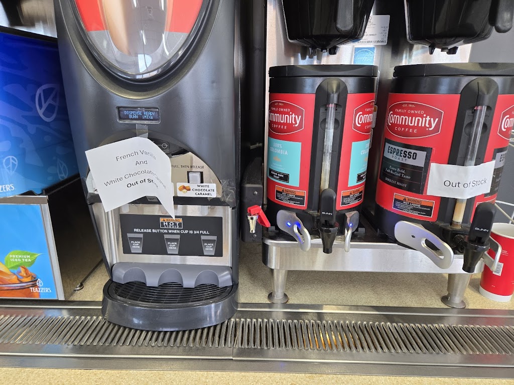 Disgusting. The bathrooms had filled trash. I ask the store attendant to fill the paper towels and he said he wasn't told to do that. I couldn't get coffee because they were out and cappuccino machine wad out also. We have stopped here on our travel for years. Please train employees and make it clean again.