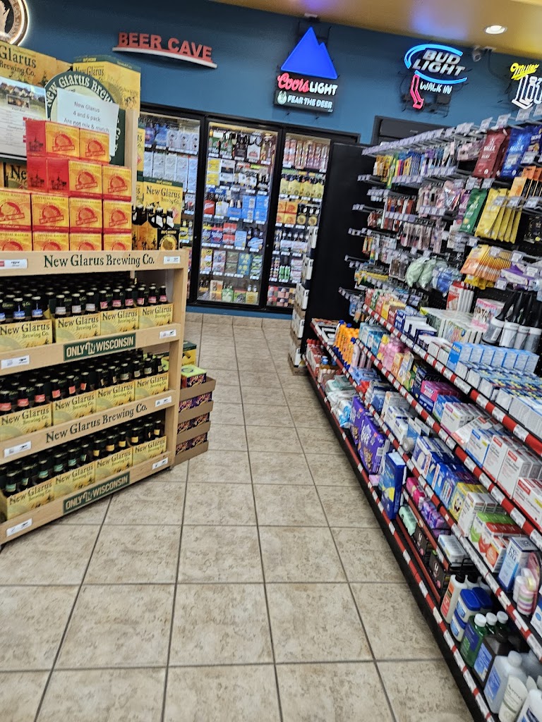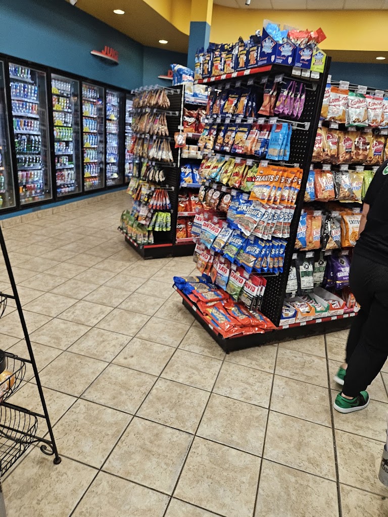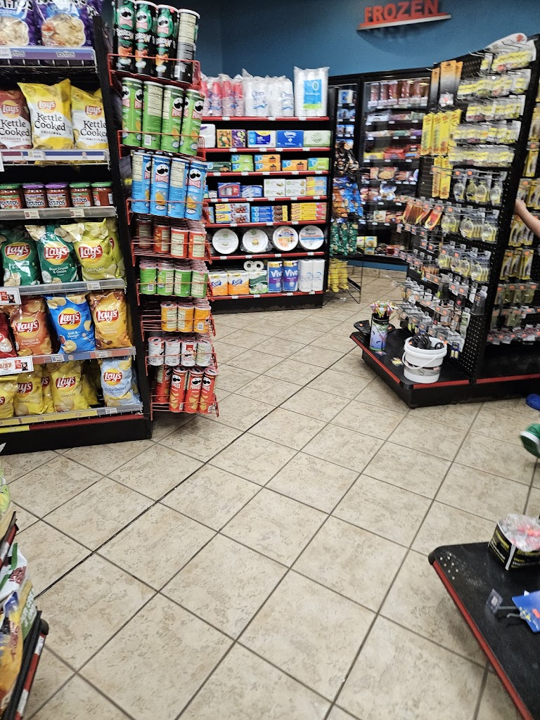 Quick place to pull off the highway and get gas and a snack/drink. The parking lot was plenty big to maneuver pumps and gas prices reasonable. The inside was fairly clean and well stocked.