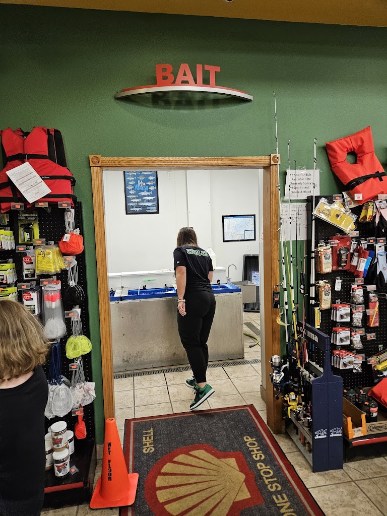 Well equipped stop with plenty of bait. Decent selection of beverages. Bathrooms could be a bit cleaner, but not bad.