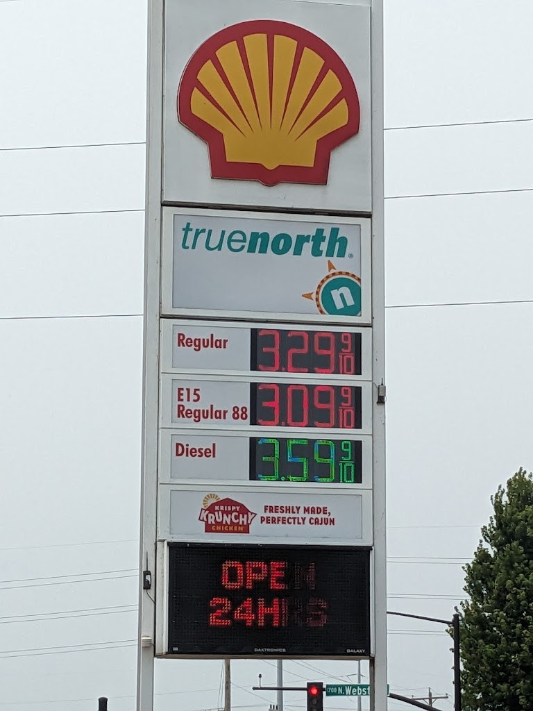 Easy place to gas up while traveling. We got off that highway and back on quickly. The restrooms were clean.