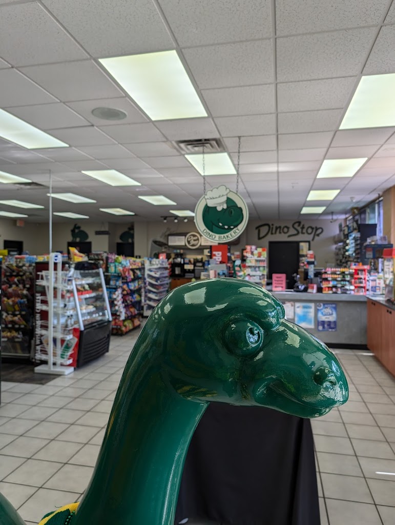 Always stop here between Green Bay and Milwaukee. Restrooms are clean and the workers are friendly. And they have a dinosaur statue.
