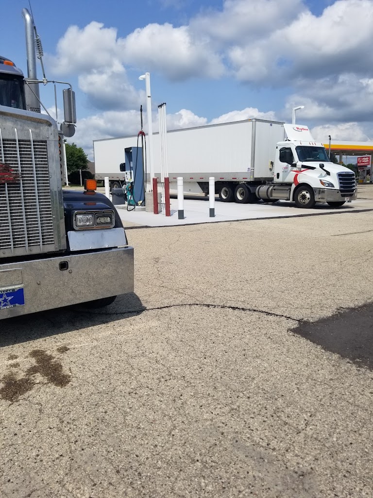 Good little truck stop. Maybe 3 trucks could park overnight here along the edge of the parking lot. The restroom was clean. They have a Subway. They have some liquor and wine too.