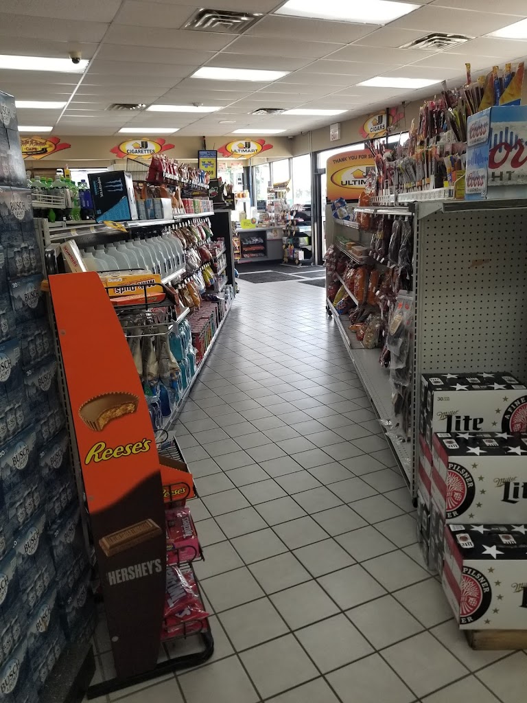 It has all three types gas. It offers a scan machine to use pig points from the store that takes money off each gallon gas. And they have seating fo a Subway Stote inside. They also have beverages.