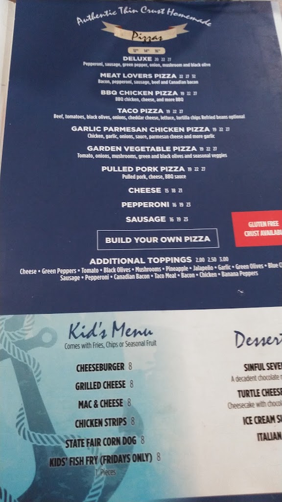 We didn’t order and food so I couldn’t rate it. Atmosphere is great and very clean. They had just opened and it was nice and clean and organized. Right on the water. We will come again and try the food. Our barlendar made excellent Bloody Mary’s but was tired from the 4th of July weekend.