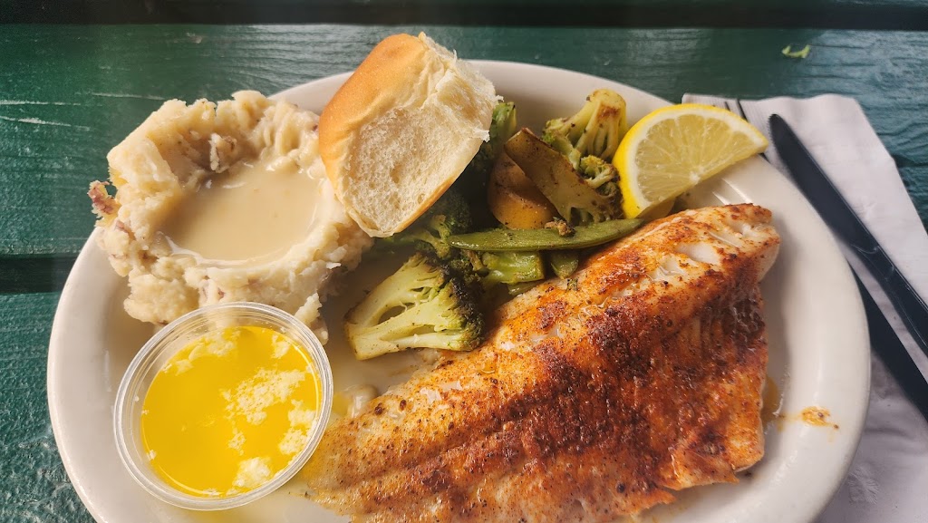 Good food good service & inside seating & bar if you prefer. Outside has a lot of picnic tables and tables with an outdoor bar open when they are busy. This is right on the lake with a beautiful view
