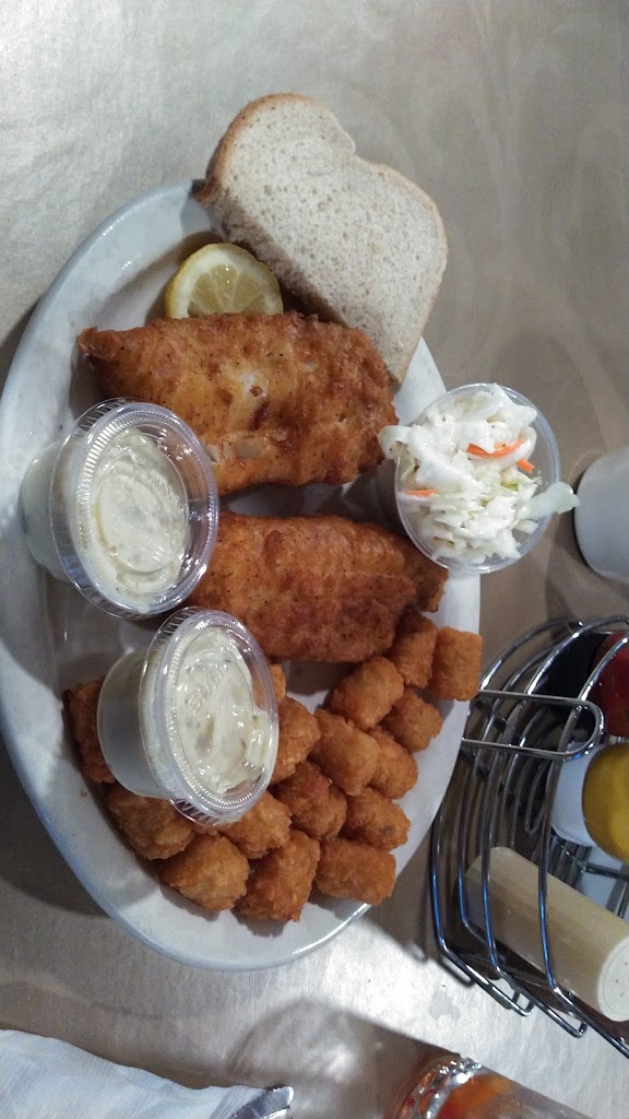 Fast friendly service. Friday fried cod was flaky with a thin crispy coating. Tots were extra crispy/done, but still tasted good. Coleslaw was bit watery but also still tasted good. We're in and out within an hour even at 6pm! Granted somewhat off season timing.