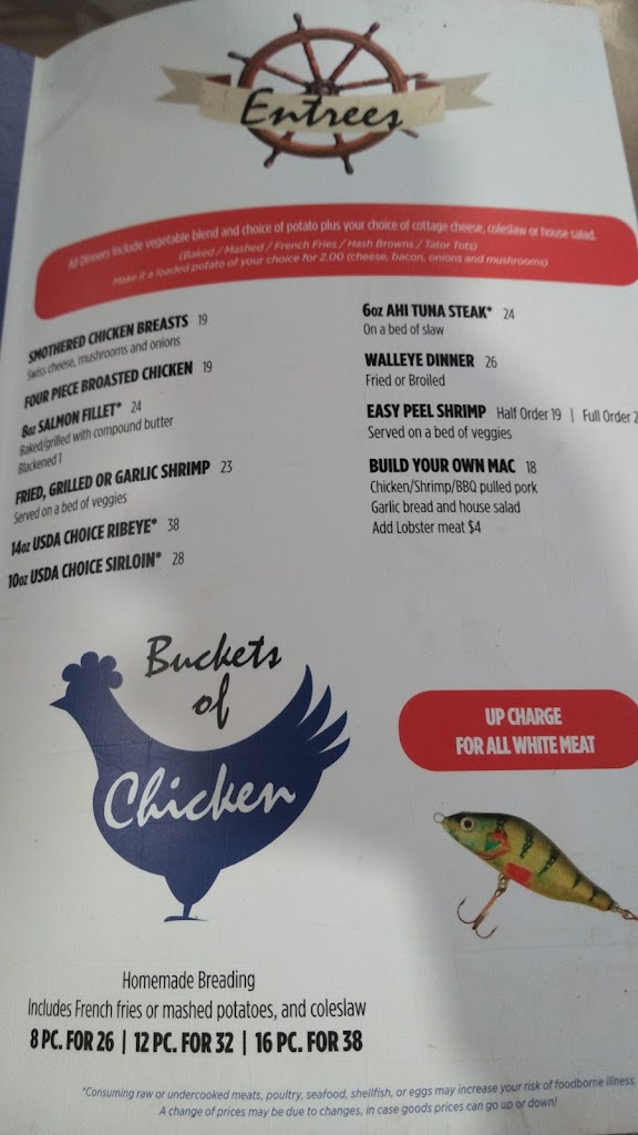 The food was terrible had chicken wings. Then we had fish tacos they were sweet not good at all. I would not recommend eating here at all save the 80 to 100 bucks and buy Culver's way better hot food worth the money.