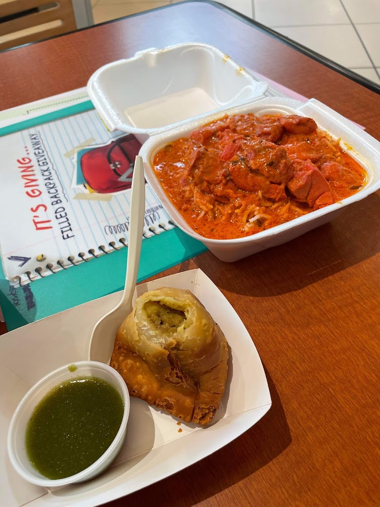 The food here was so delicious! Try some of the street foods: the samosa chaat and dahi puri especially. I even have an allergy that makes ordering complicated and the woman was super kind and accommodating. Unfortunately the rest of the food court was empty but it's worth the trip to just come for the yummy Indian food here.