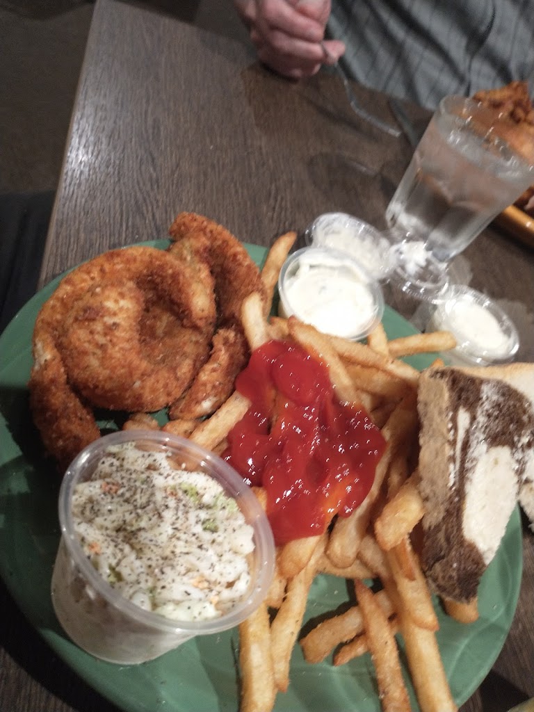 Had the shrimp with garlic butter(6) & scallops (4). They were cooked perfectly and came to the table hot. Squash & zucchini lacked flavor. Mother in law had the broiled whitefish, very good. Hubby said his cheesburger was probably the best he's had in a while. Of course the chicken tenders were a hit with the kids!