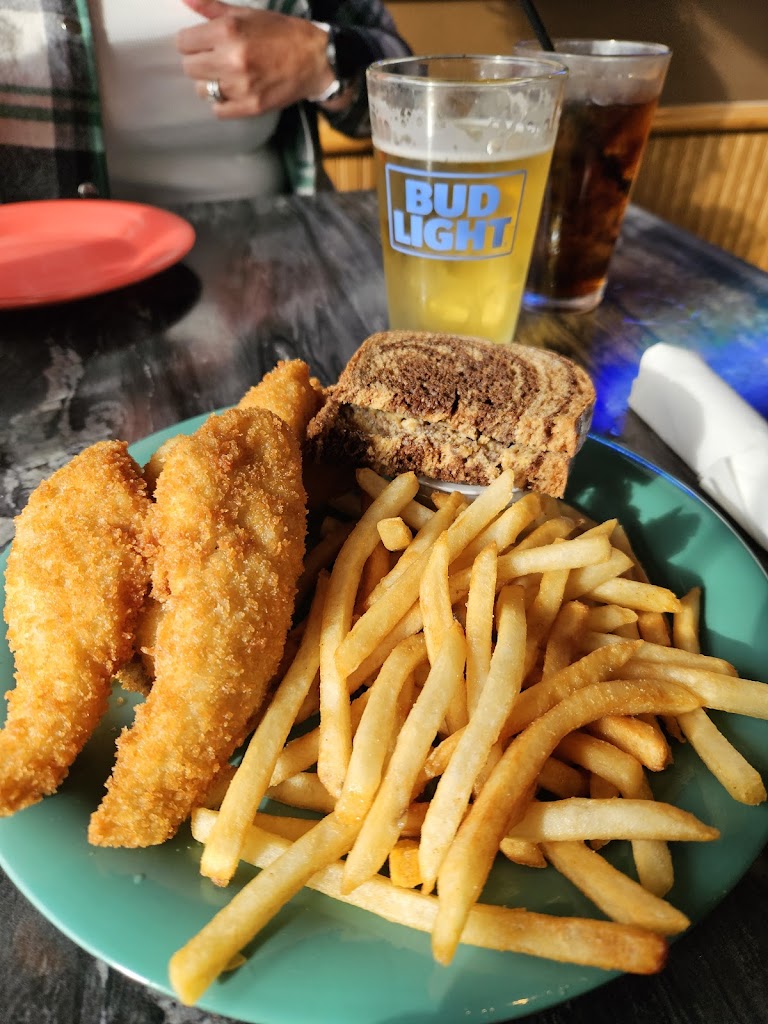 I usually only go here on a Wednesday or Friday fish fry. Their perch are crispy breaded and come with cole slaw and marble rye with onion. Also comes with your choice of potato which they have a good variety especially if you want something fried but not regular fries (tater tot stars, sour cream wedges, or waffle fries). I also have a few soups here that I love like the Tailgator and cheesy broccoli. Took a star off because they don't offer much for local brewery tap beer. Last time I was there I ordered Anhapee little solder amber but they were out so I disappointedly ordered a Michelob bock.