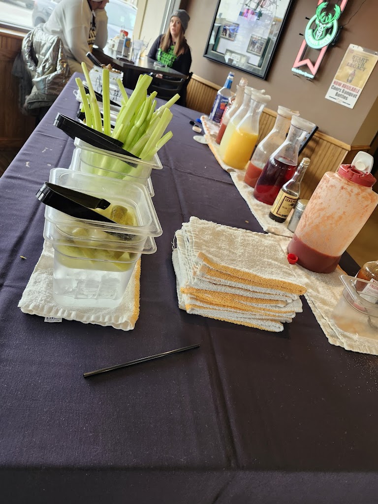 They also had a bloody Mary bar where you can make your own. It had a lot of items including pickles, cheese, sausage, pickled veggies and olives. There were various sauces and different types of tomato juice.