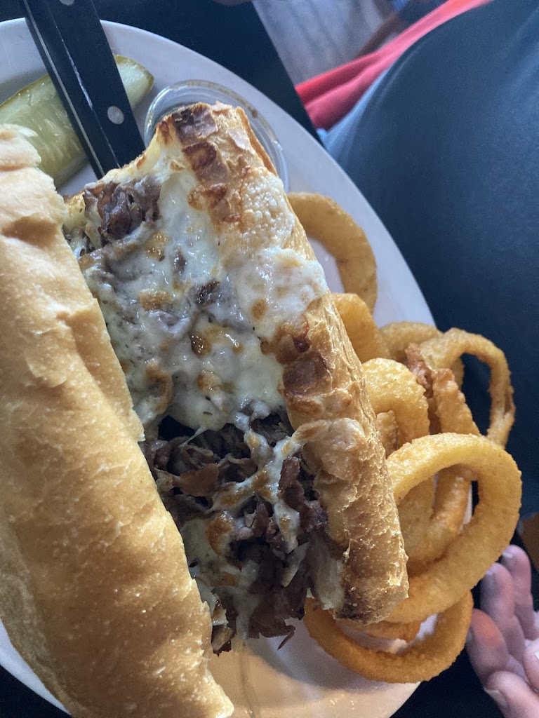 We only get take out so far but we love getting the smothered steak sandwich, it's delicious. Only "complaint" is my partner asks for medium rare/rare and it's overcooked lately. He says it's still really good though.