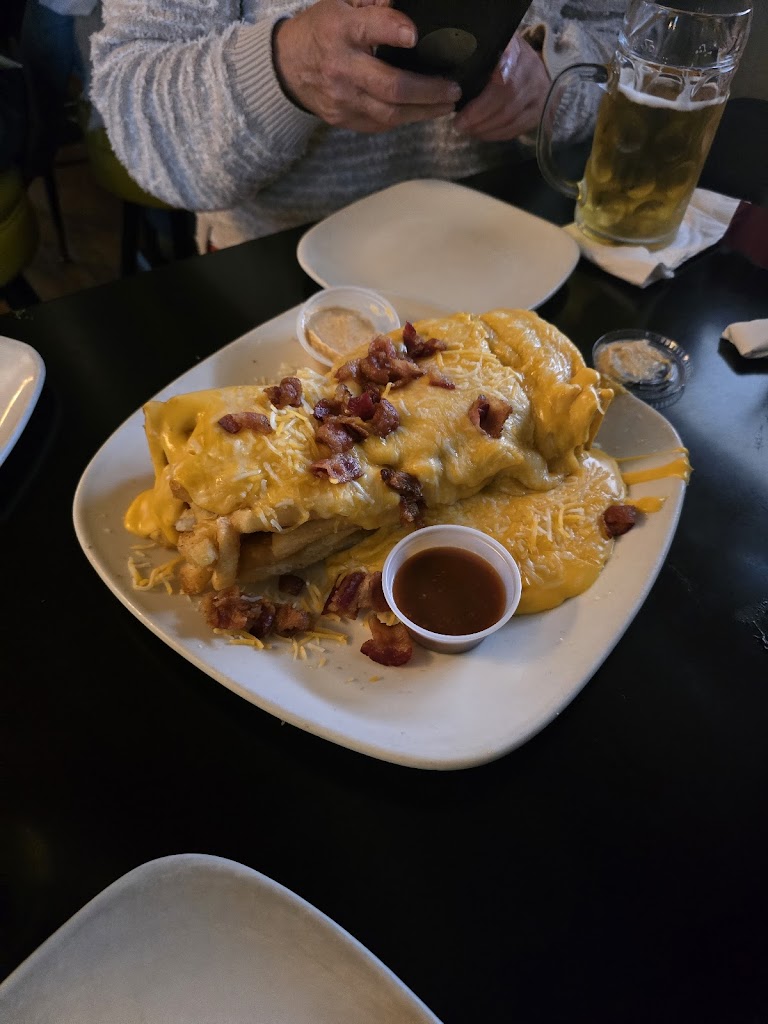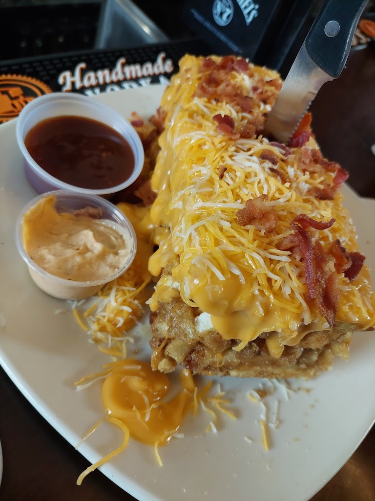 Great pub with amazing food and service! Recently, we visited this pub because we had heard great things about the food and drinks. It was a great experience and we are looking forward to our next visit. We started with long islands which there are different varieties to choose from. I had the strawberry one and my husband had a cherry one. They were both great! We ordered the monkey fries, which we had heard about. These aren’t your average cheese fries! They arrive smoothers in cheese and huge chunks of bacon and a knife stuck in them to cut them. The fries came with two types of sauces - one was made with stout that had a Smokey flavor. The other dipping sauce had horseradish and was my favorite. The monkey fries were delicious! We probably should not have ordered sandwiches as the drinks and fries were plenty. I ordered the angus burger perfectly cooked with an amazing toasted bun. Hubby had the Italian beef that was dreamy. I’d go back again just for the amazing bun that the yummy beef and mozzarella was served on. We both had onion rings with our sandwiches. This pub is awesome. If you have a chance check it out!