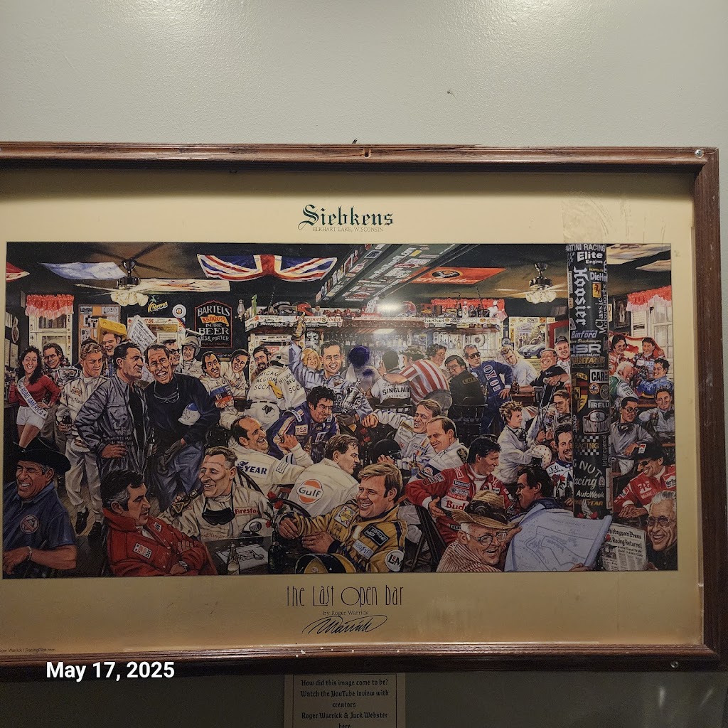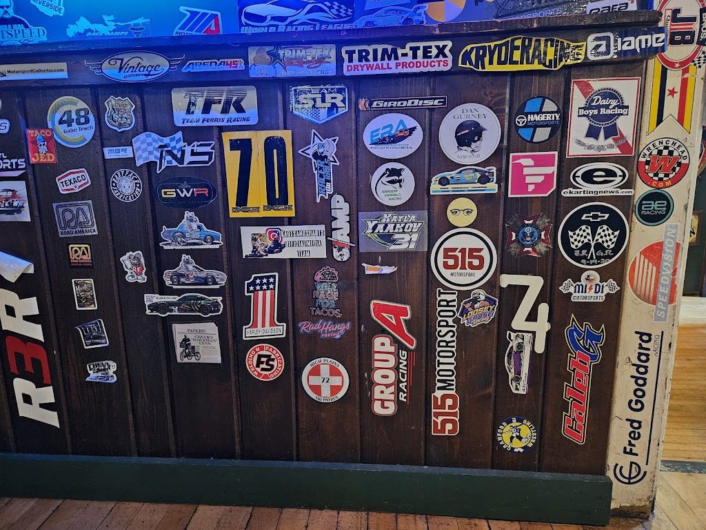 We visited the bar and grill while we were in town competing at Road America. It's amazing to experience the racing culture and heritage that the area celebrates. My prime rib sandwich was amazing! Of course, we left our racing team's sticker on the wall with the racers who have visited before us.