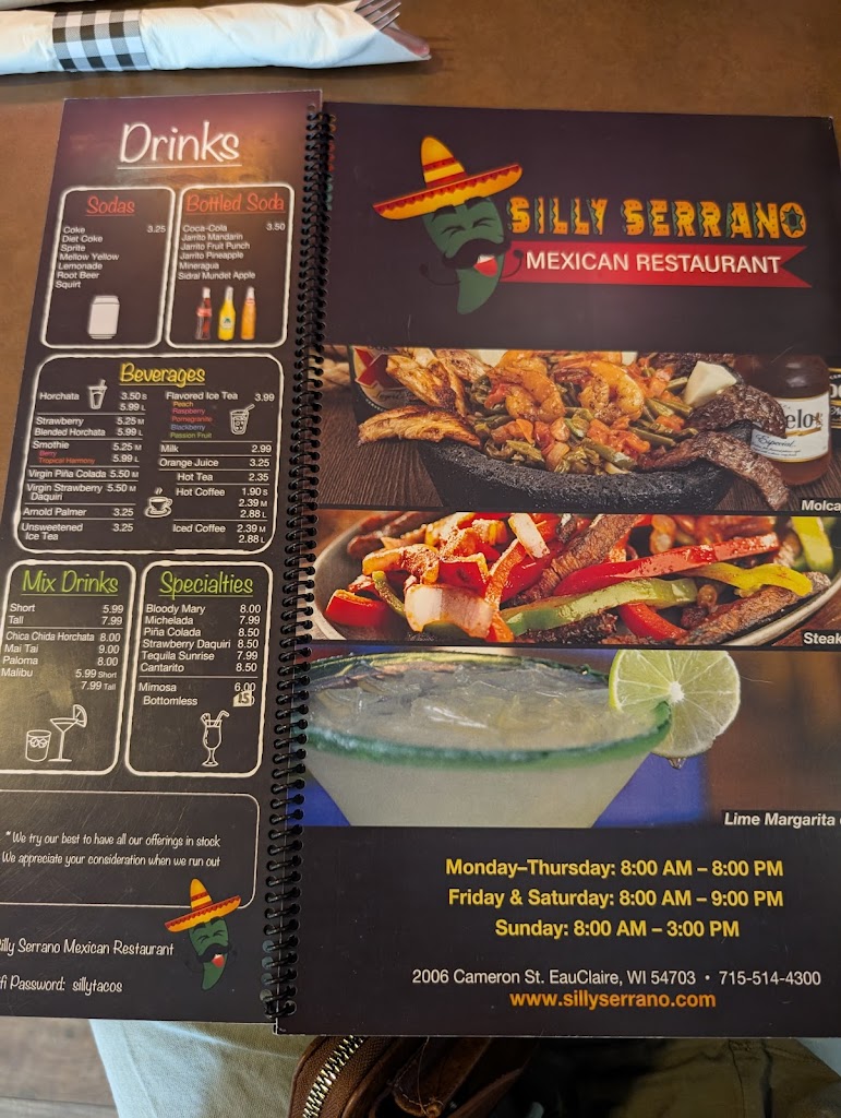 One of my favorite places. Atmosphere, customer service, and the food are all most excellent. I had the Keto Breakfast Bowl (so healthy and delicious) and the yummy chai latte. Actually, the best I've ever had. Silly Serrano is my first choice in restaurants in the Chippewa Valley.