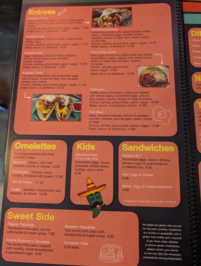 Came in for breakfast, had a margarita and an absolutely incredible breakfast burrito. Worth every penny!