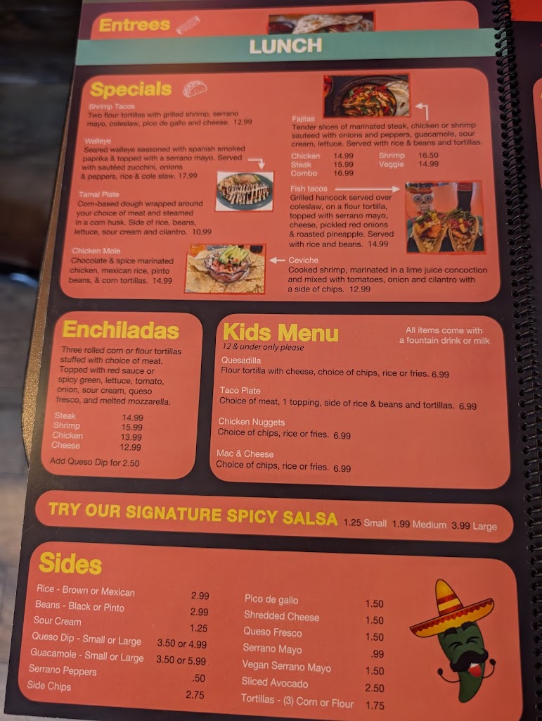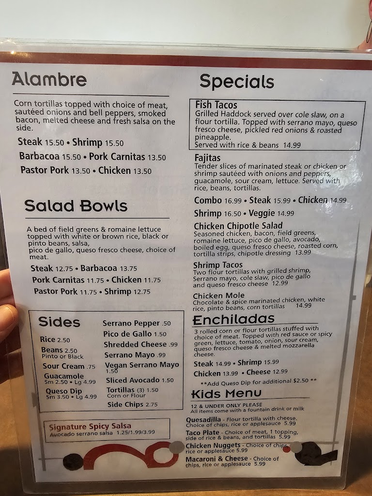 Great food no complaints on the establishment itself but the online menu is a nightmare to navigate and the online ordering is kinda annoying as well but the food and service , top notch Eau Claire needs less chains and more places like this , alambres tamales are 🔥🔥🔥