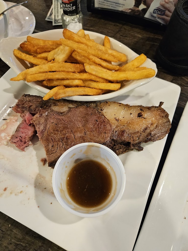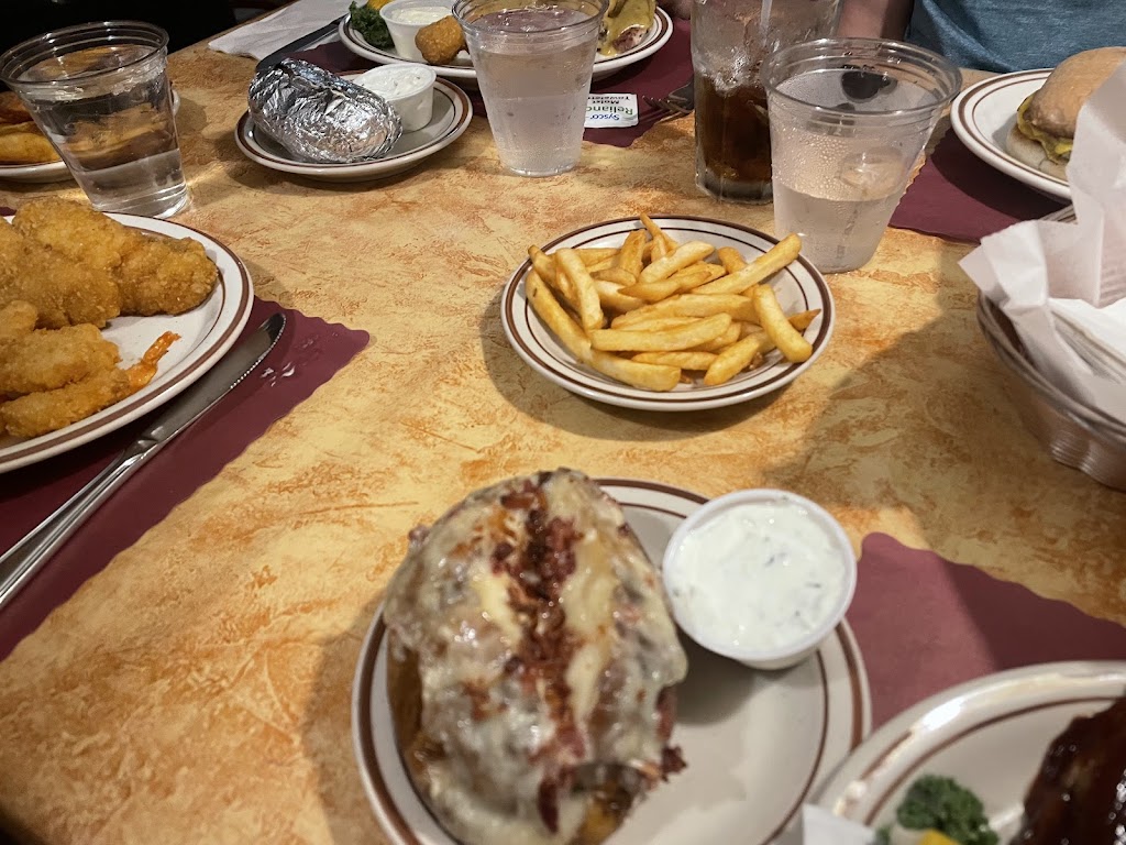 Food - my husband got the fish, he said it was good... I enjoyed the cheese curds, a bit pricy. Rest of the food... was good EXCEPT for the filet mignon... That was DRY & VERY over cooked. Both my daughter & I got it & we were highly disappointed but hungry. Waitress asked if we would like her to do something but I was already over half way done eating it and she was looking to take my whole plate, so I said no. I was surprised that there was nothing taken off the meal though for the overcooked food. Ever eat dry steak? You need a sauce or drink to go with it... Well drinks weren't filled as much as I'd have liked. I drink lots of water and with that, it was hard but having it available when we ran out.