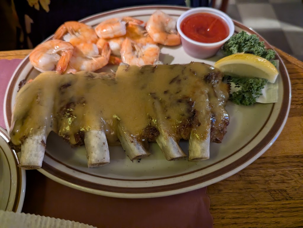 The all you can eat ribs and shrimp for 16 cannot be beat, very good. Plus $4 Old Fashioned, great little place and great atmosphere