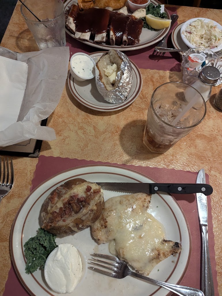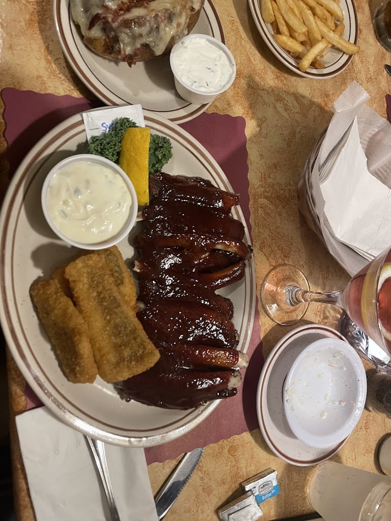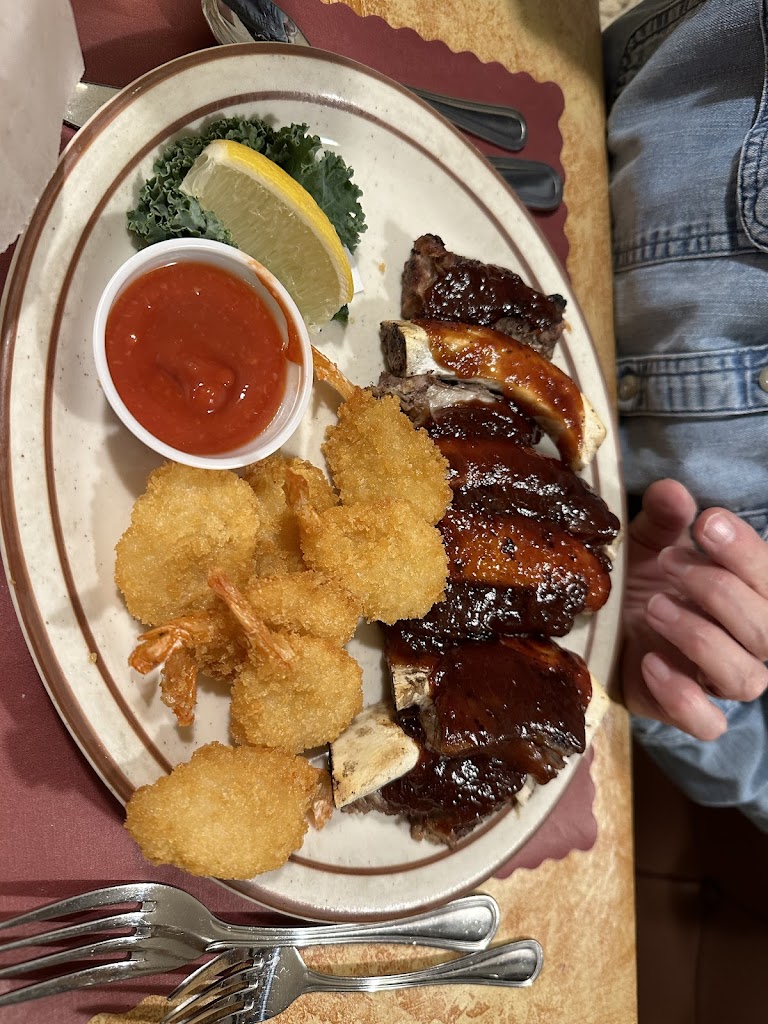Had all you can eat ribs and peel and eat shrimp. Both were delicious. Service great. The salad that comes with the meal was huge and also very good.