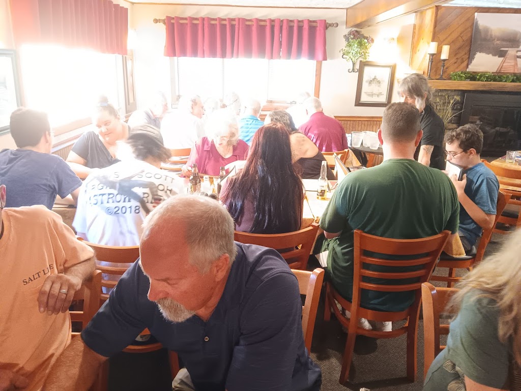 Very crowded. Loud. Maybe 18 tables and hardly any room to walk. I don't recommend someone coming that's in a wheelchair. Floor was uneven and hard to walk on. Very tight walk ways. Hard not to walk into someone else. Ceiling definitely needed repair. As well as I spilled my water and no one stopped to help at all. Noticed some staff saw and didn't even offer to grab paper towels. Thankfully we had a few napkins there. Which is why I am giving it 2 stars. Wish there were bigger windows a view to the woods or water. But there wasn't.