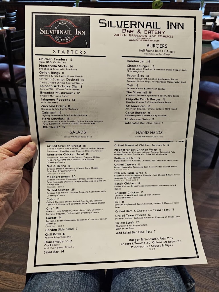Welcome to The Silvernail Inn. We are located in beautiful Pewaukee, WI (I-94 & Hwy T). We are a family owned business and have been in the restaurant business for over 30 years. Our goal is to create an atmosphere for families & people of all ages to come and enjoy our food while spending quality time & creating memories that will last a lifetime. Quality Food, Quality Service, & Quality Time spent at the Silvernail Inn.