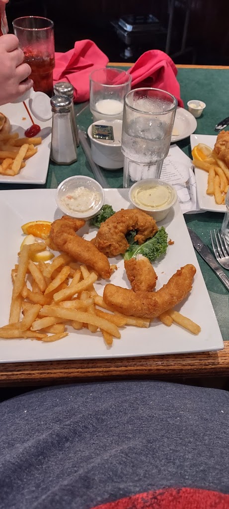 3 of us came in for dinner on 9/2. Ordered cod fry, burger and baked bourbon fish. Both fish dinners came with soup and salad bar. Ordered onion rings and calamari for apps. Didn't try the onion rings but calamari was rubbery. Salad bar was basic but good. Soup was ok. Hot bread loaf was good. Burger was average. Fish fry had a funny taste in the batter. Something funky in the oil or something. Tartar sauce tasted like vinegar. The other baked fish dinner was barely touched. Waitress didnt ask how everything was after we received our main dinner. We waited almost an hour to be acknowledged to get our bill. Finally the 2 people in our party got up and walked outside and finally the waitress came with the check and said so sorry. Not worth 100 plus tip. Very disappointed.