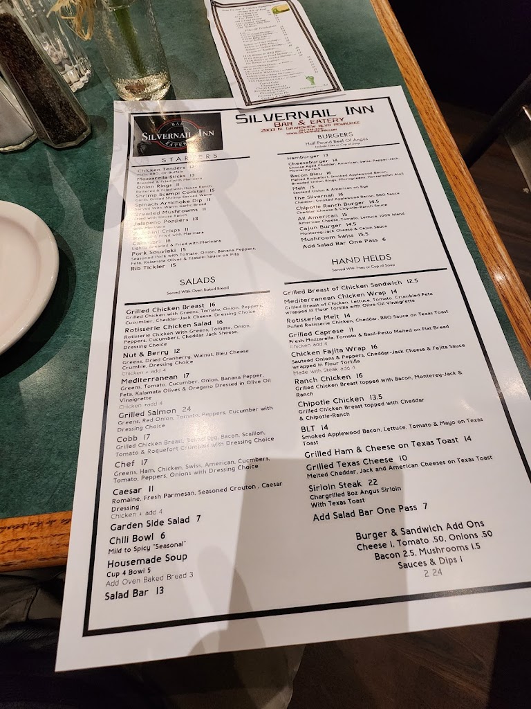 We just had one of the best meals at Silver Nail Inn! A favorite of ours is their full soup and salad bar with hot bread. Today we had lamb for the first time and it was amazing! The steaks with mushrooms, swordfish and scallops were outstanding! We didn’t think we had room for dessert but managed to share a piece of delicious pie. The bartender, Scott, server, Angela and owner, Ted are fantastic. It was a special night for us personally and they made sure it was perfect and more! Ironically, even the music is what we like to listen to. Thank you all for a very memorable dinner!!! This is a gem of a restaurant and I highly recommend.