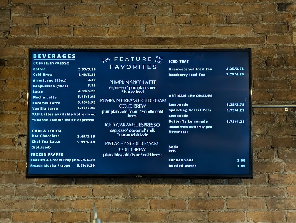 Coffee was good and warm. The all American breakfast sandwich was spot on. The bun was the best part. The decore was awesome. Loved the exposed brick with the tin roof was very cool. The only knock was it felt dark , almost dreary. Great place , I would definitely go again if in the area.