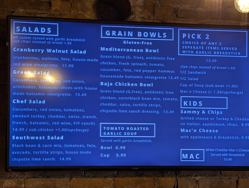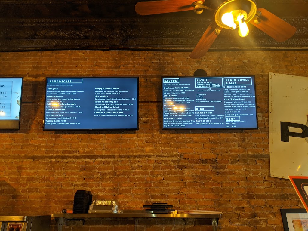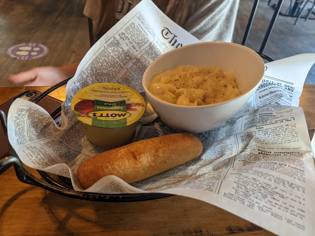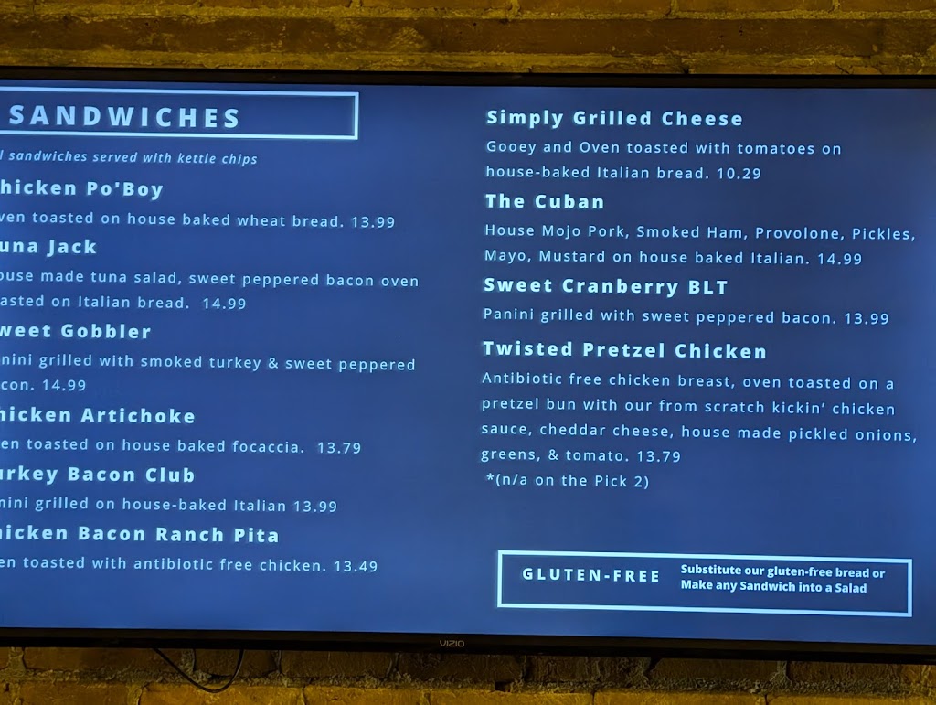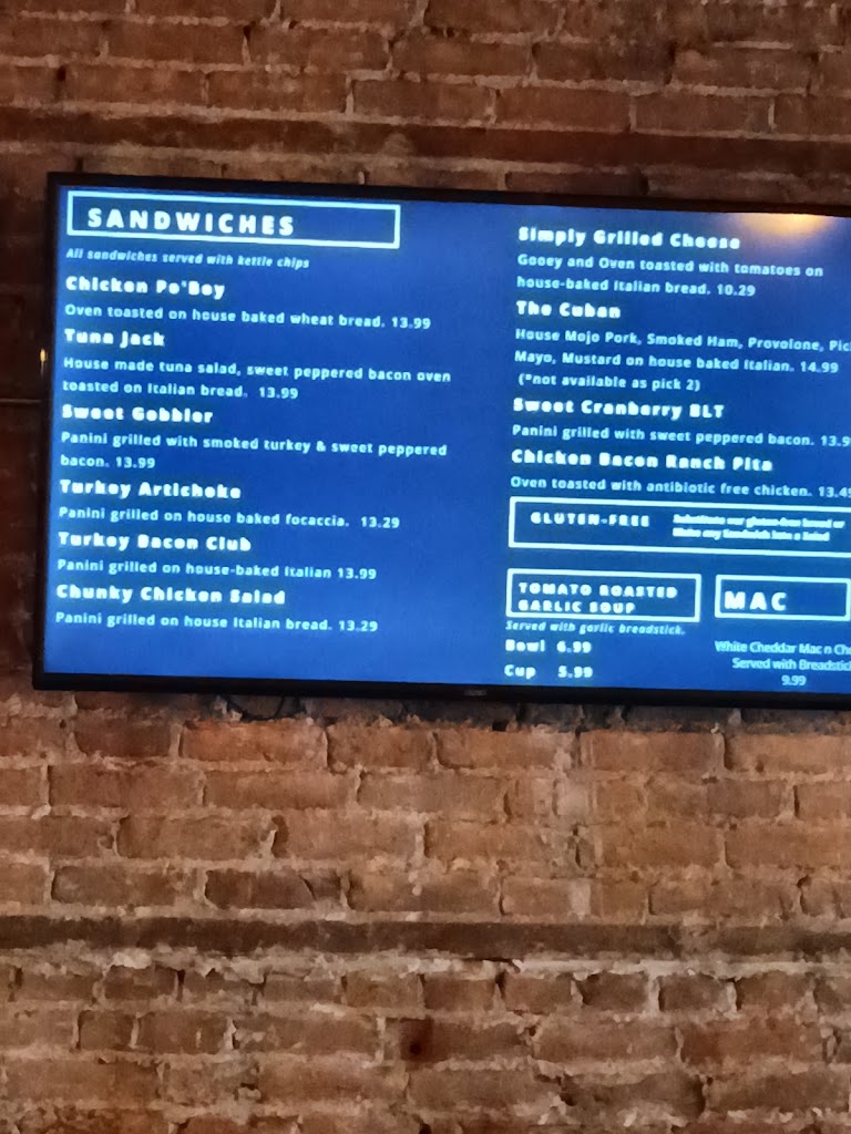 Friendly staff, fair prices, good food. Very modern menu. I had the smoked turkey with sweet bacon was very good and my son had Mac and cheese he said was good.