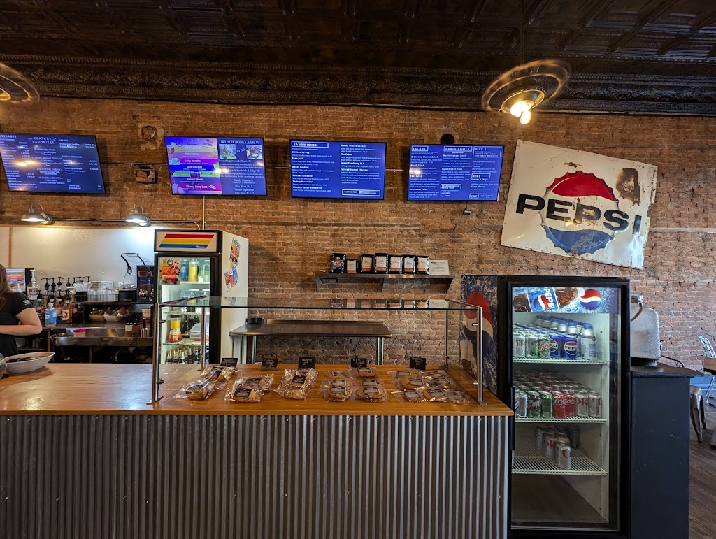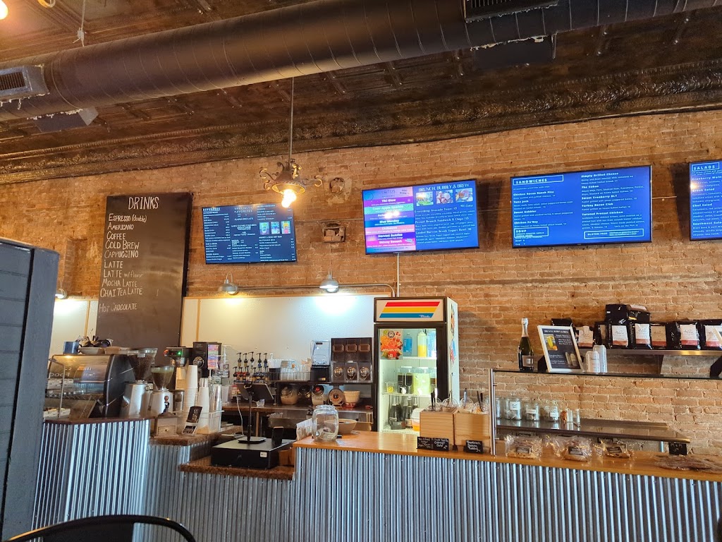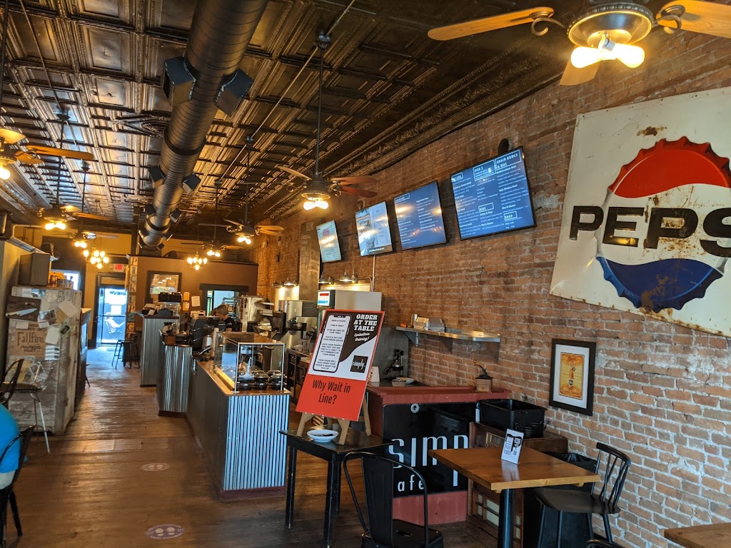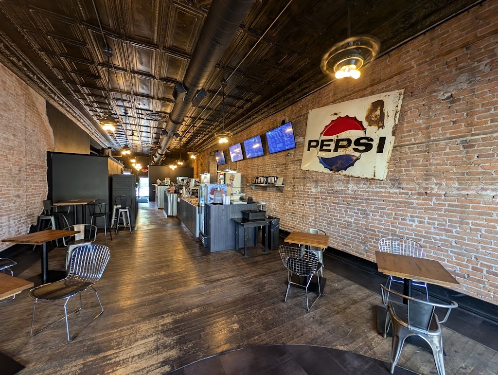 Terrific staff, good coffee and great food in a fun and eclectic setting. I highly recommend stopping by and sampling the menus if you have the opportunity. Plenty of indoor and some outdoor seating. The building has a tin ceiling and the business enjoys general good vibes all around.