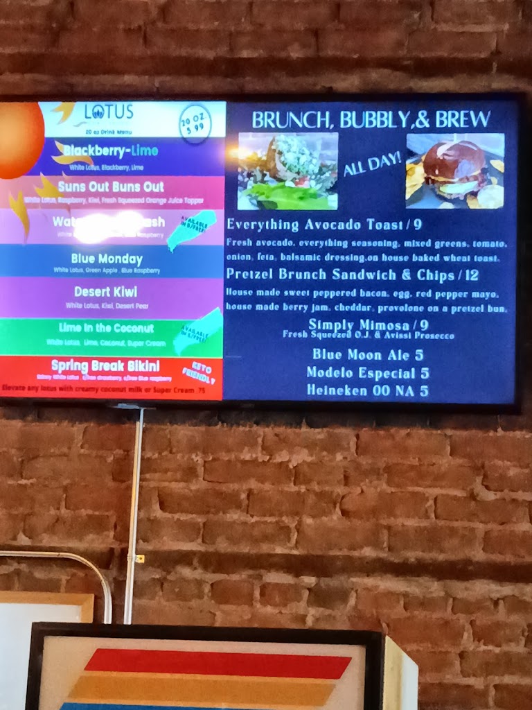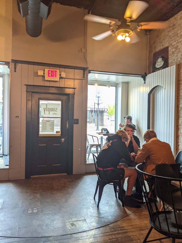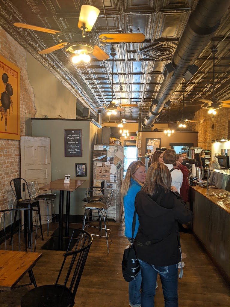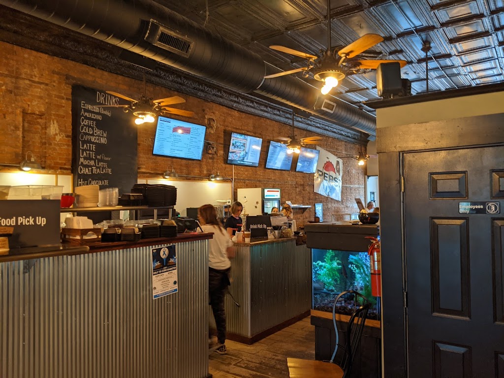 Terrific staff, good coffee and great food in a fun and eclectic setting. I highly recommend stopping by and sampling the menus if you have the opportunity. Plenty of indoor and some outdoor seating. The building has a tin ceiling and the business enjoys general good vibes all around.