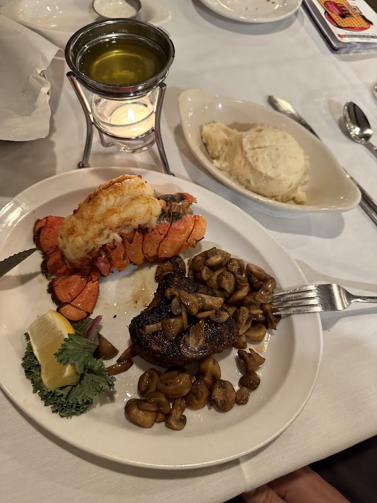 The steak and potatoes were cold when we're served then we seated at a table where I drinks almost slide off would not recommend anyone to go there!!!