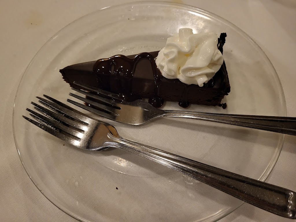 We were greeted with a smile and seated right away. Our waitress was prompt and friendly warm bread with garlic butter was served with a relish tray. Delicious! A nice glass of wine was served before the the main course. Our main course was served to perfection, hot, on time and delicious. Of course we had to have dessert and coffee. Timing was good, we were not rushed. The atmosphere was nice and quiet to have a romantic evening with my wife.