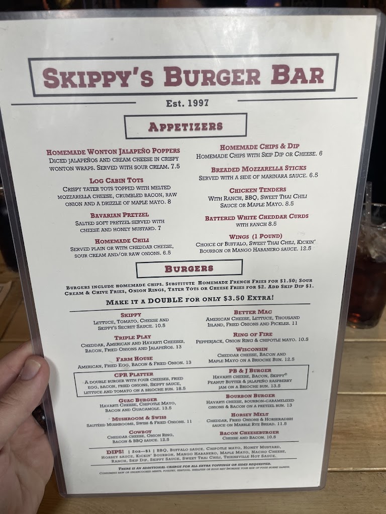 I'm a burger enthusiast and am a big fan of this small burger bar. For food options in Thiensville proper (not Mequon) this is simply one of the top options. I've tried at least 5 of the burgers on the menu and all are very tasty. Amount of fries given with meals is a little on the lighter side for my preferences but should be plenty for most people. I also highly recommend the maple bourbon old fashioned and loaded maple tots! Service is always amazing as well. Thanks Skippy's ❤️