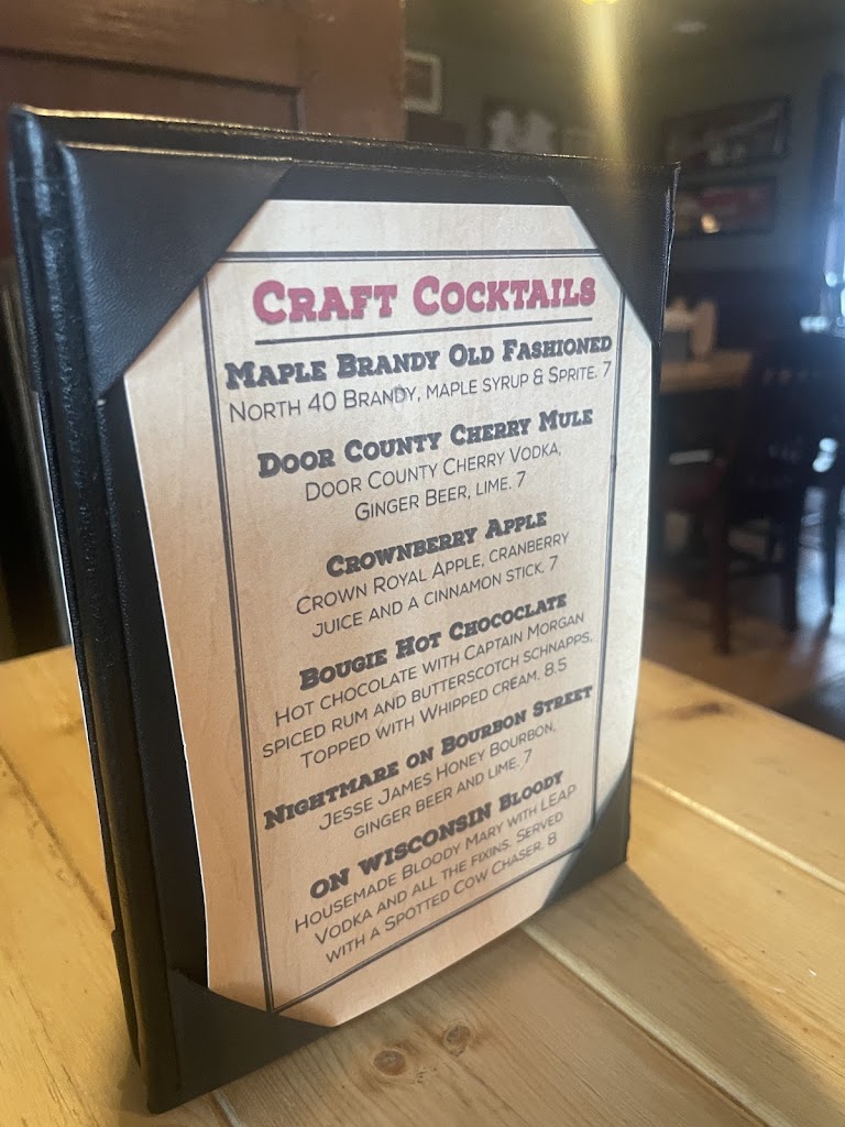 Comfy, friendly and yummy... Good fish fry, pizza, chilli. Nice laid back place... Just did a return visit on 4-5, and enjoyed again! Samantha delivered great service, our burgers were excellent! Bourbon one and one with egg and bacon. Very yummy cheese curds too! Of course, great beer, tried the Skippy Amber on draught. Will be back!