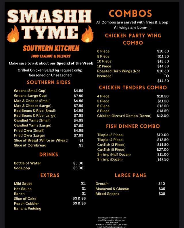 SmashhTyme Southern Kitchen offers southern-style cuisine including delicious chicken, fish, shrimp, mac 'n cheese, collard greens red beans and rice and more.