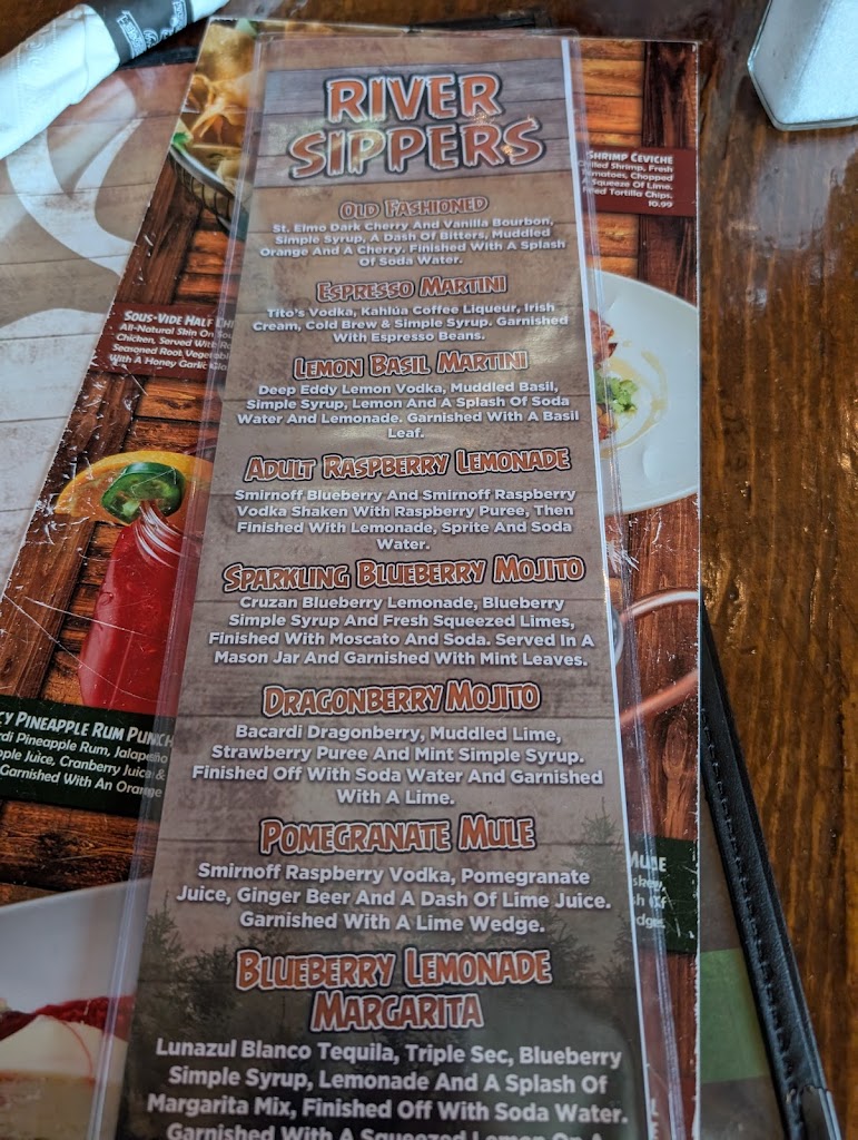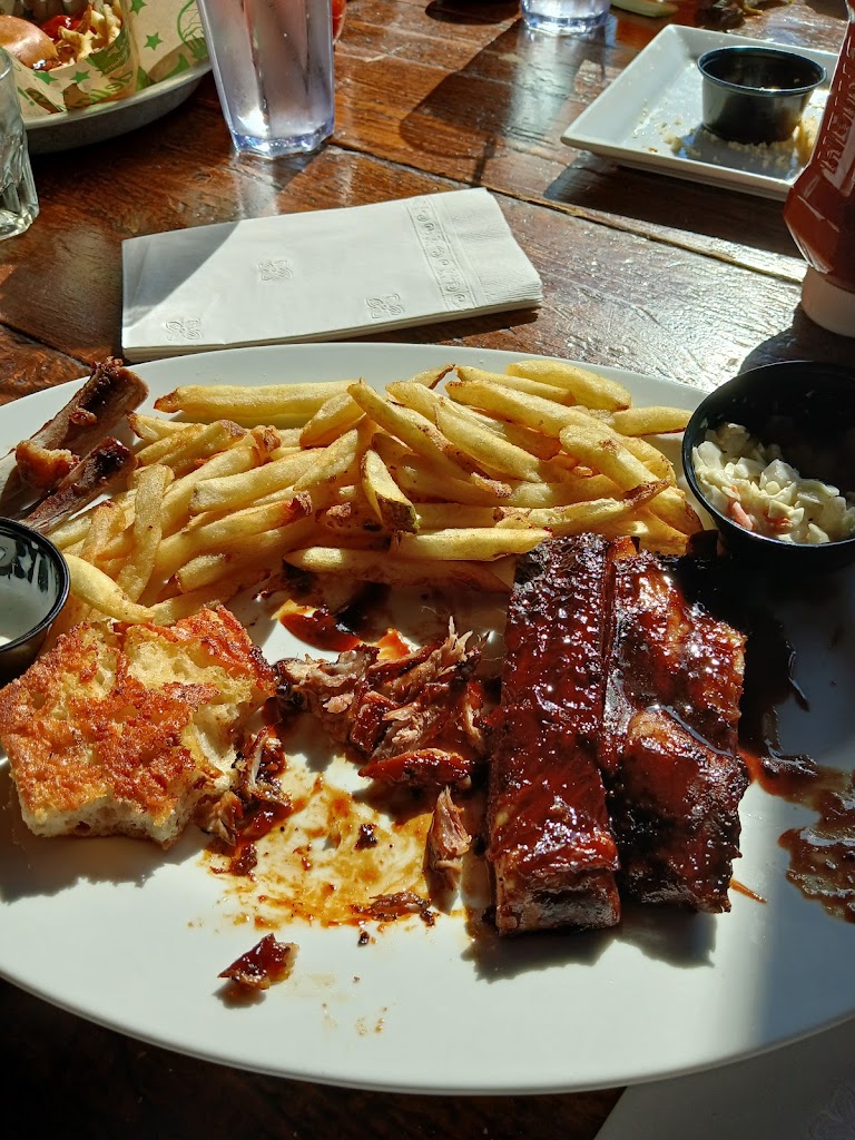 I had ribs and homemade mac and cheese with onion straws on top. Omg!!! Still thinking about how yummy it was. Mojito's arent bad either!