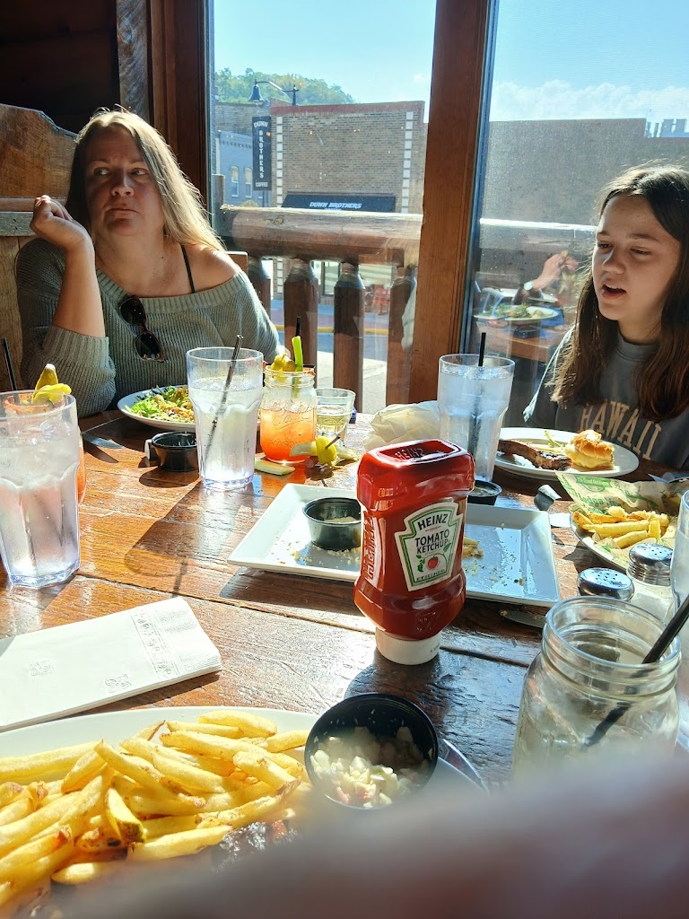 Had a nice lunch on the upper patio with the pup,great view, we really enjoyed our food,and gluten free options were many,will be back