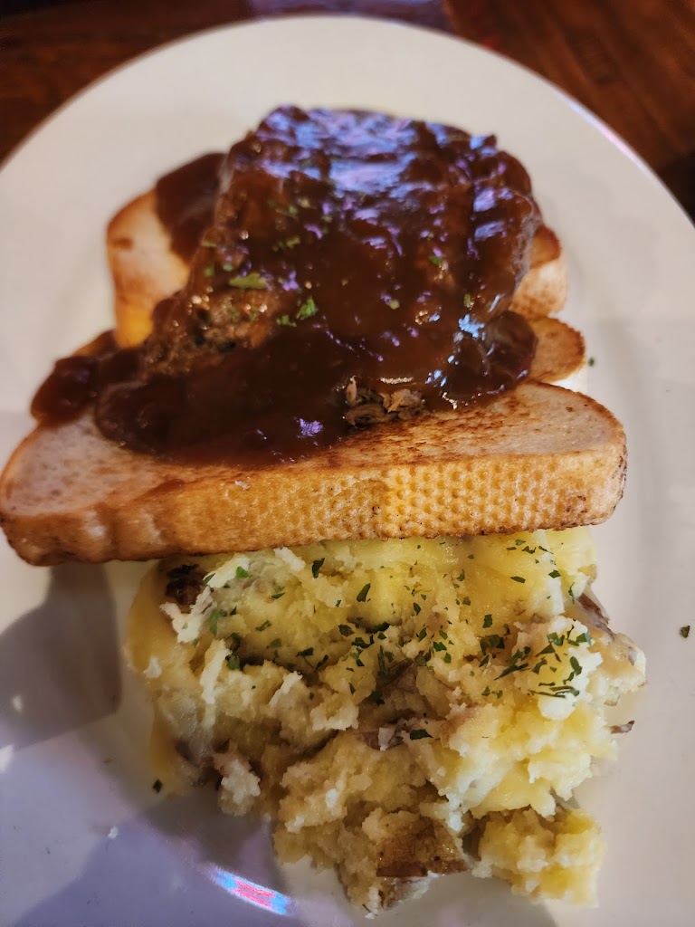 Traveling through. Stopped for dinner. I had fish and chips. Excellent. My lovely GF had pot roast open face sammich. Also excellent.