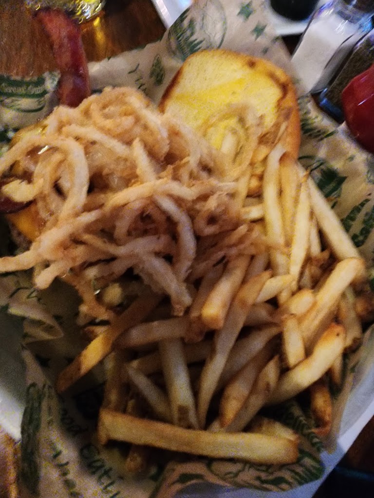 My buddy got some sort of seasoned fries that were very good maybe a little heavy on the lemon zest but other than that, they were pretty good but the flavor was over powering, about half way through I had to take a brake and rinse my pallet.