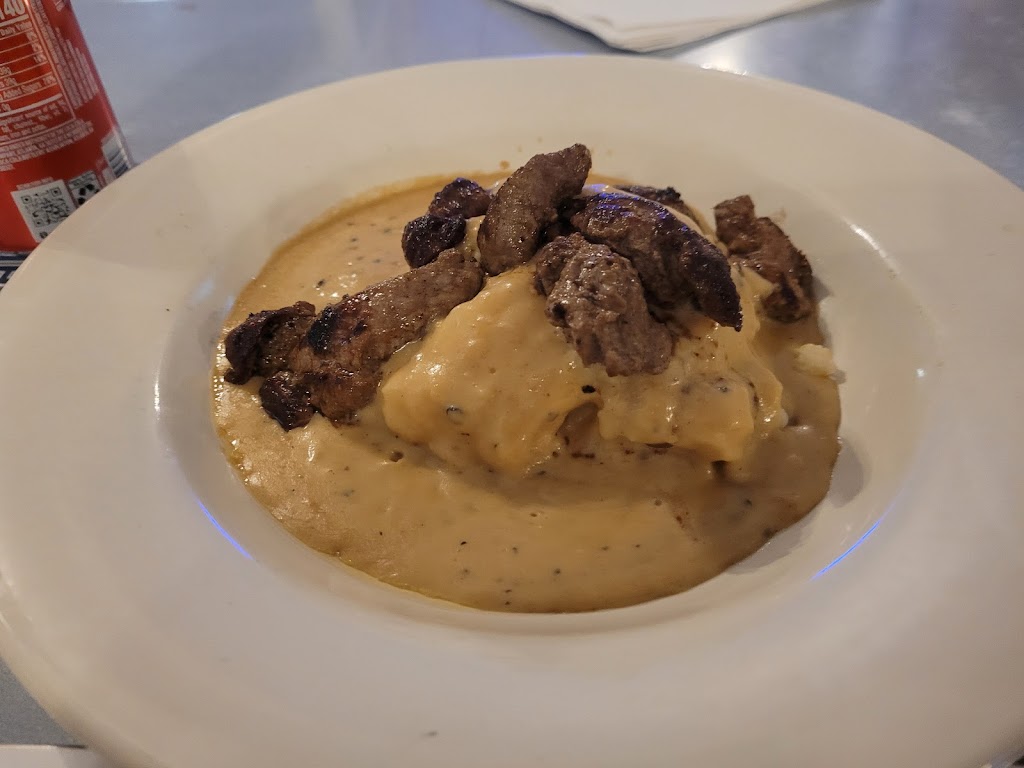 New place for me. Was great burger with prim rib on top. Wow. Definitely going back.