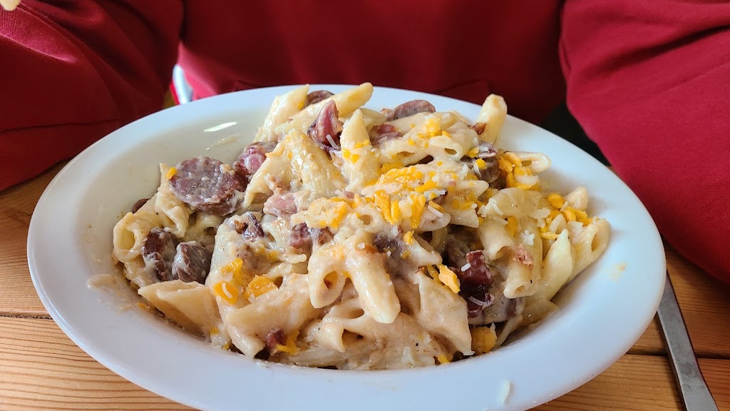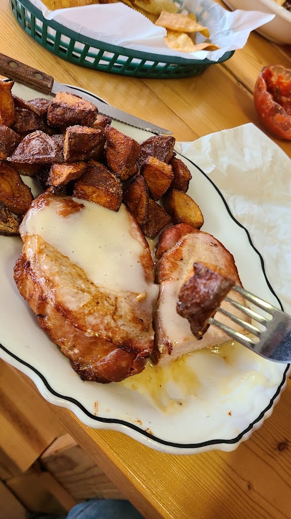 Very good food. Fast service. I had the pork loin special. My wife had the pasta special. Pork loin had a nice smokey flavor with a pineapple glaze. Potatoes on the side. Also came with a bowl of chili. The pasta special was a queso cheese sauce with penne'.. a smoked brat and bacon. All were delicious. Had to take about 3/4 of the pasta dish to go and because the pork loin actually had 2-1" pieces, I brought 1 of those home also. Good value.. about $40 for two including drink. Definitely coming back.