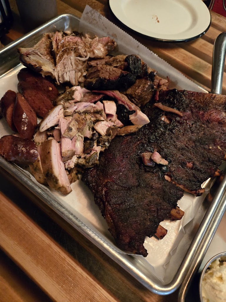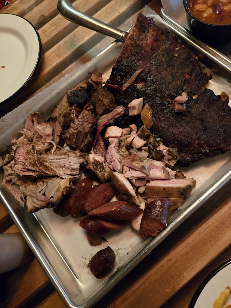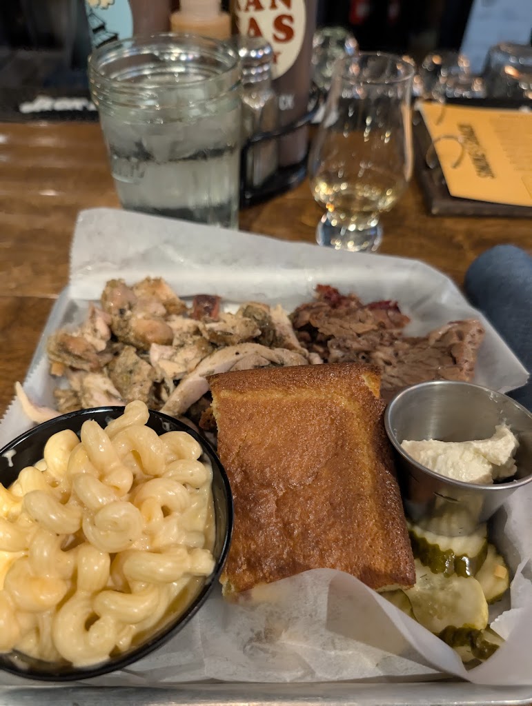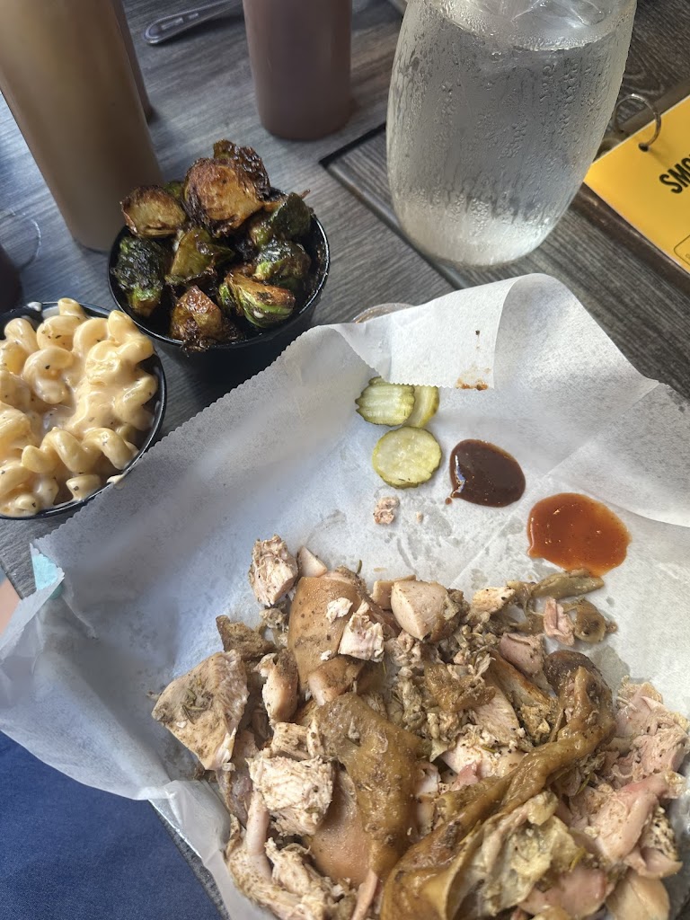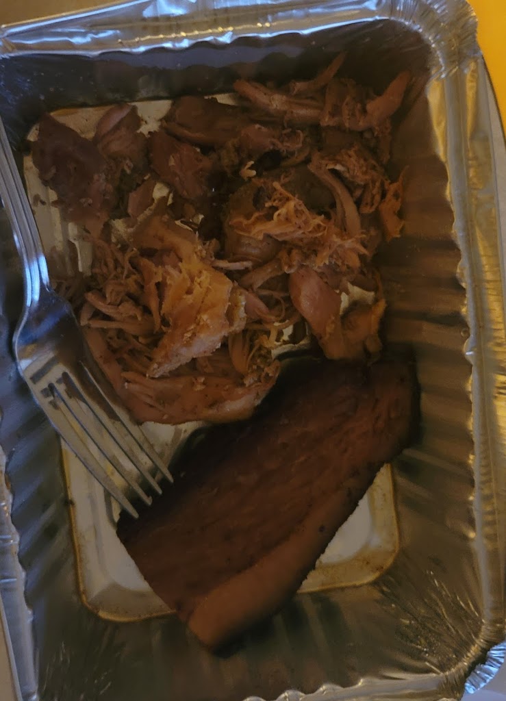 I ordered takeout last weekend. I was very disappointed in the flavor when I got home and ate the food. Initially, I was hesitant to leave a review because I rarely do so, but the taste was so bad that I felt like I had to say something. Unfortunately, I am still thinking about how tasteless the food was a week later when I am staring at all of the leftovers in the refrigerator. The brisket was the best thing and by no means was it flavorful. The pulled chicken tastes like air. I actually gave a large portion of it to my dog and he liked it, which means I didn’t waste all of my money on this meal. The baked beans were extremely watery, and again tasted like flavorless air. The macaroni and cheese, a.k.a “macaroni noodles” because there was no cheese, tasted like plain noodles–no flavor. I’ve been here before and this was not what I was expecting. Overall, this was a bad experience.